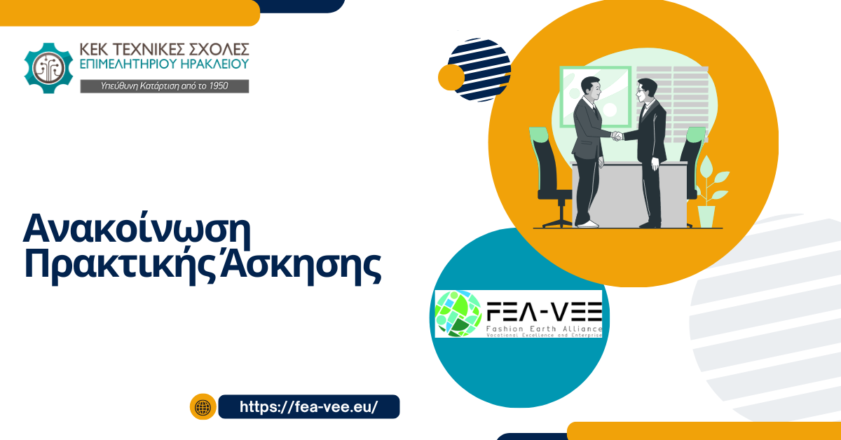 Στα πλαίσια του Ευρωπαϊκού προγράμματος FEA-VEE, προσφέρονται θέσεις πρακτικής άσκησης σε επιχείρηση του τομέα της μόδας. Οι θέσεις αφορούν: