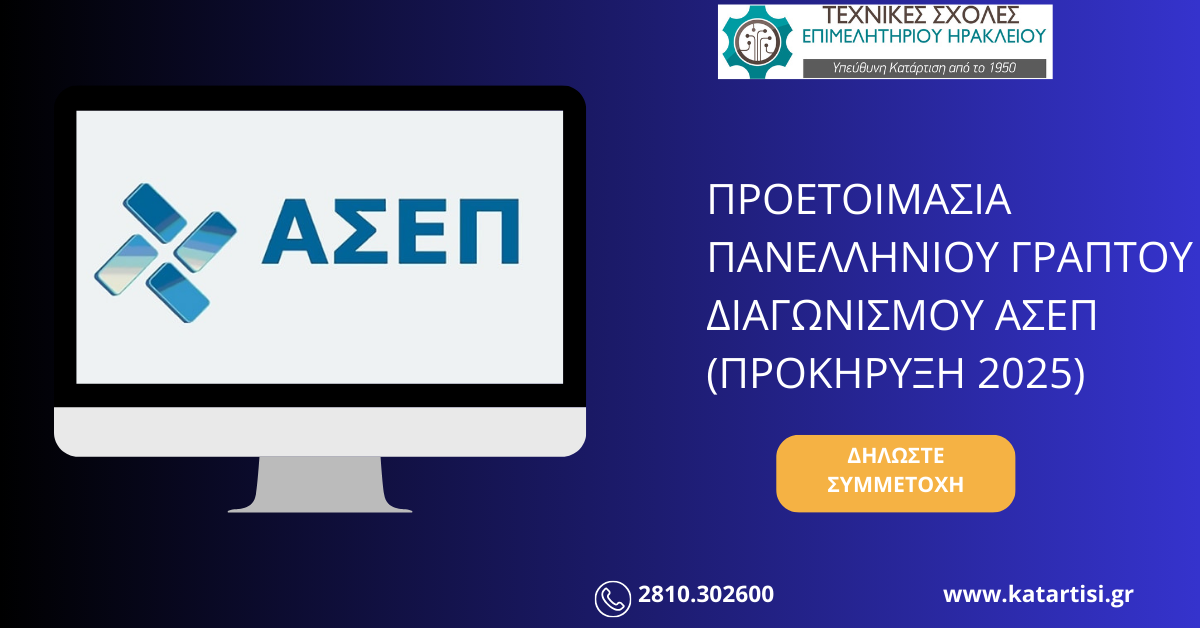 Κάθε Δευτέρα και Τετάρτη από 10/03/25 έως 14/04/2025 17:00-19:30 σύνολο 30 διδακτικές ώρες